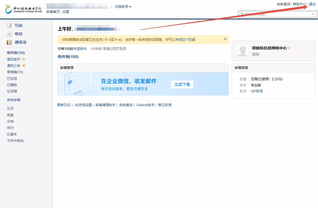 打开浏览器,输入企业邮箱网页版地址:http://mail.zztrc.edu.cn/;