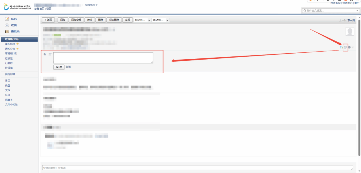 若需协作处理,可在邮件详情页点击「添加备注」,标注处理进度或意见,其他成员可查看备注内容;