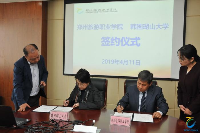 徐永清副院长对金元经理事长一行的来访表示欢迎,介绍了河南及郑州的概况,然后介绍了我院的发展历史、专业结构、师资队伍、人才培养、对外交流、社会影响力等方面情况,并着重对烹饪食品系、酒店管理系和旅游外语系开设的专业进行介绍,他表示两校专业设置相近,双方可以相互借鉴、深入合作。韩国瑚山教育财团理事长金元经对我院的热情接待表示感谢,对郑州及我院的发展表示称赞。朴素镜校长介绍了瑚山大学的发展历史、特色专业、合作院校等内容,希望两校能在技能型人才培养方面深入合作,成为伙伴。随后,双方对专业合作、文化交流及留学生的培养模式进行了深入商讨,就学生培养达成了初步合作意向,签署合作协议书。