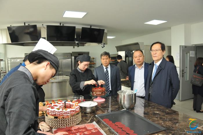 在徐永清副院长的陪同下,金元经理事长一行参观了我院烹饪食品系、酒店管理系、旅游外语系的实训室。