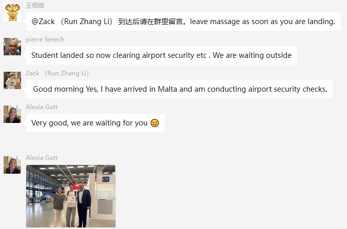 2025年9月10日,pp电子旅游管理专业张斯涵,酒店管理与数字化运营专业刘钰佳、李润章、张晋轩共四名同学顺利抵达马耳他,即将在马耳他旅游学院开始为期两年的本科阶段学习。马耳他旅游学院校长Pierre Fenech和教师代表Alexia Gatt亲自前往机场迎接,并对同学们的到来表示热烈欢迎。