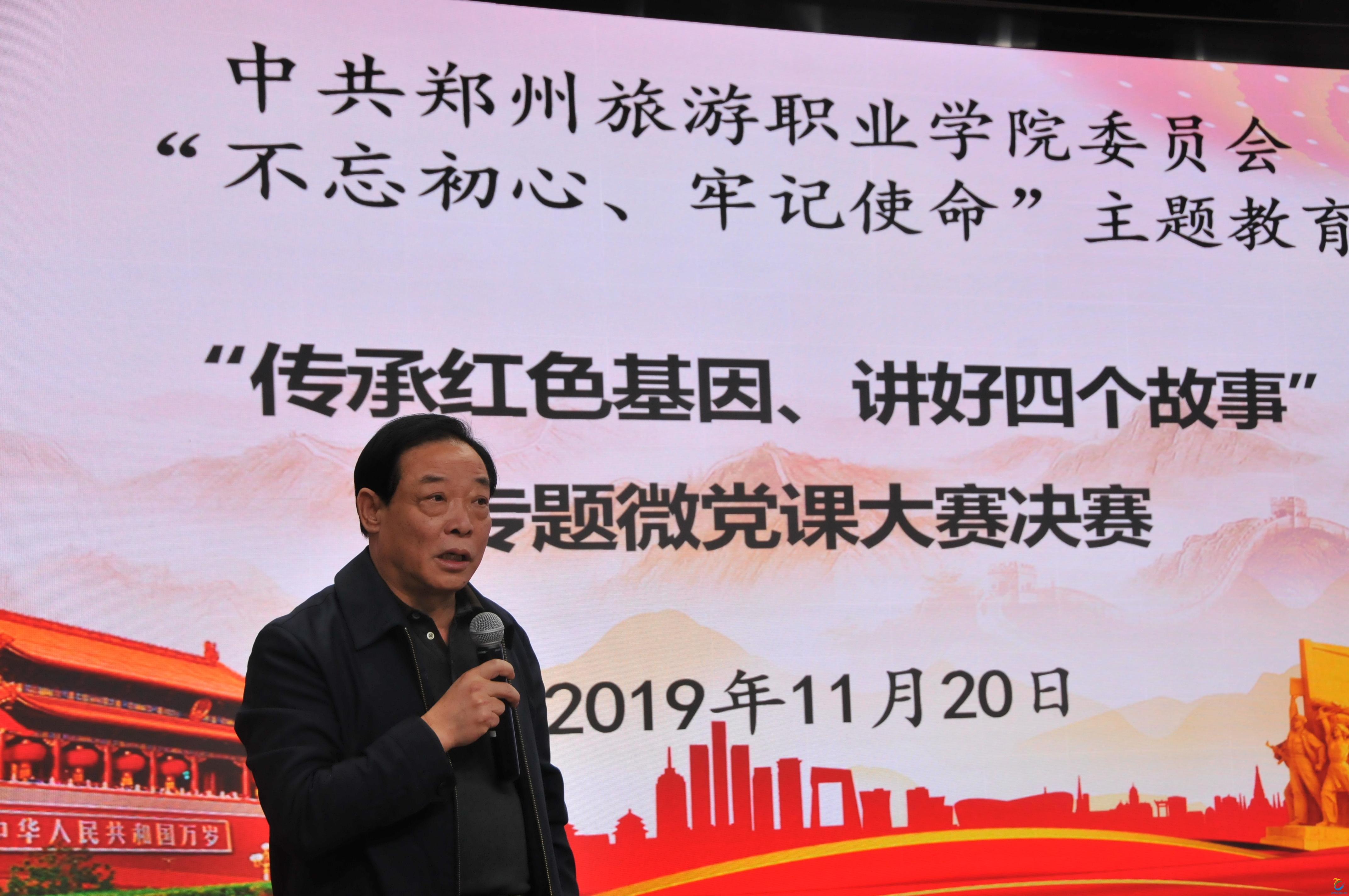 为扎实做好“不忘初心、牢记使命”主题教育,加强革命传统的学习和继承,推动党员干部思政理论水平提升,11月20日下午,pp电子在综合楼2B演播厅举行“传承红色基因、讲好四个故事”专题微党课大赛决赛。市委主题教育第十三巡回指导组成员、郑州三中副书记宋志华、学院党委班子成员,以及副科级及以上干部到场观看比赛。