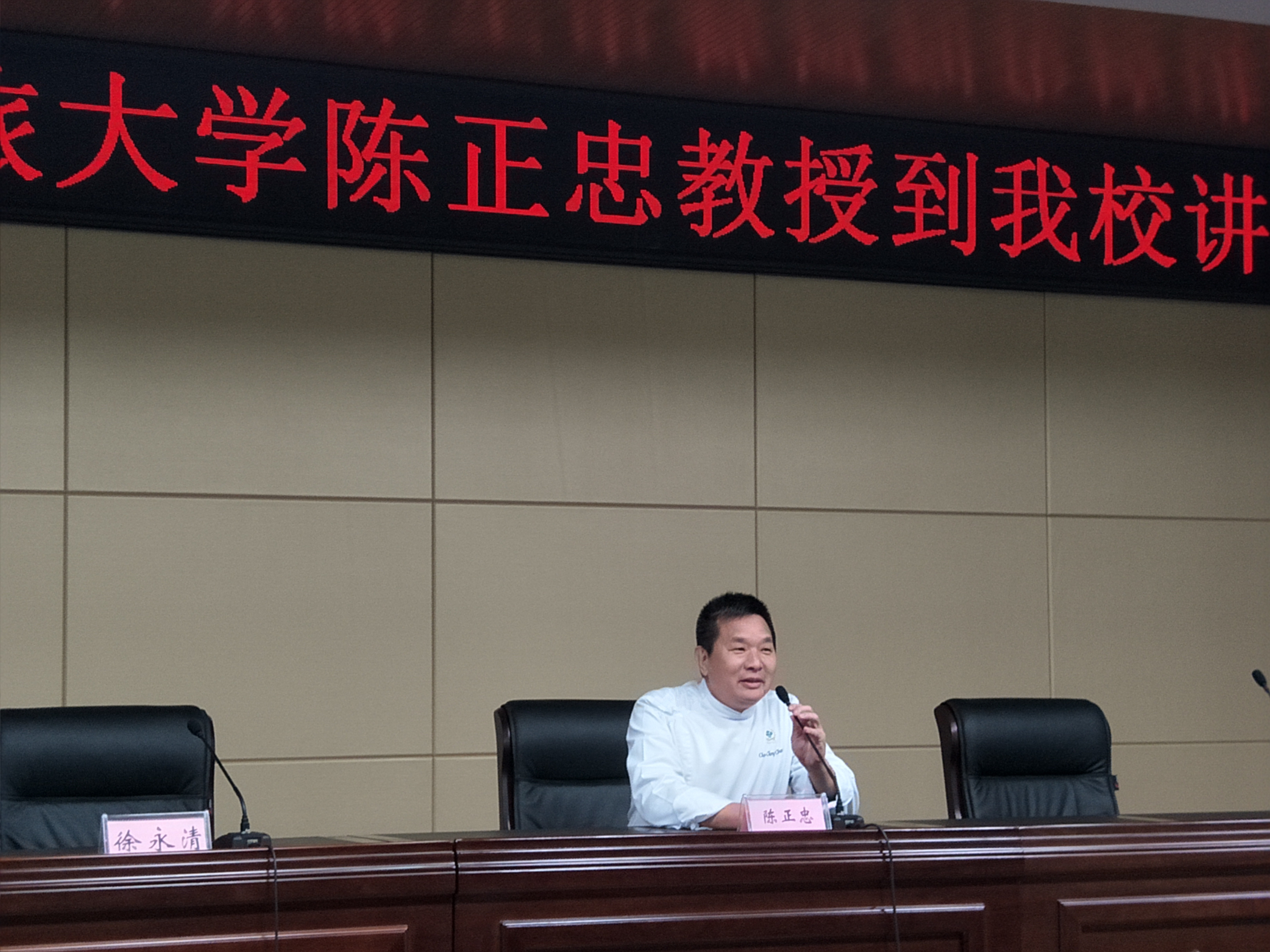 据悉,陈正忠教授现任台湾高雄餐旅大学中餐厨艺系主任,曾任台北来来大饭店俱乐部主厨、高雄汉来大饭店俱乐部主厨、统茂休闲旅馆集团顾问。荣获第十七届中华美食展校园厨艺竞赛总冠军特金奖、马来西亚烹炉大观世界金厨大赛金奖。专长是中餐烹调、宴会管理、刀工技术、中华料理艺术研发、肉品分切作业。