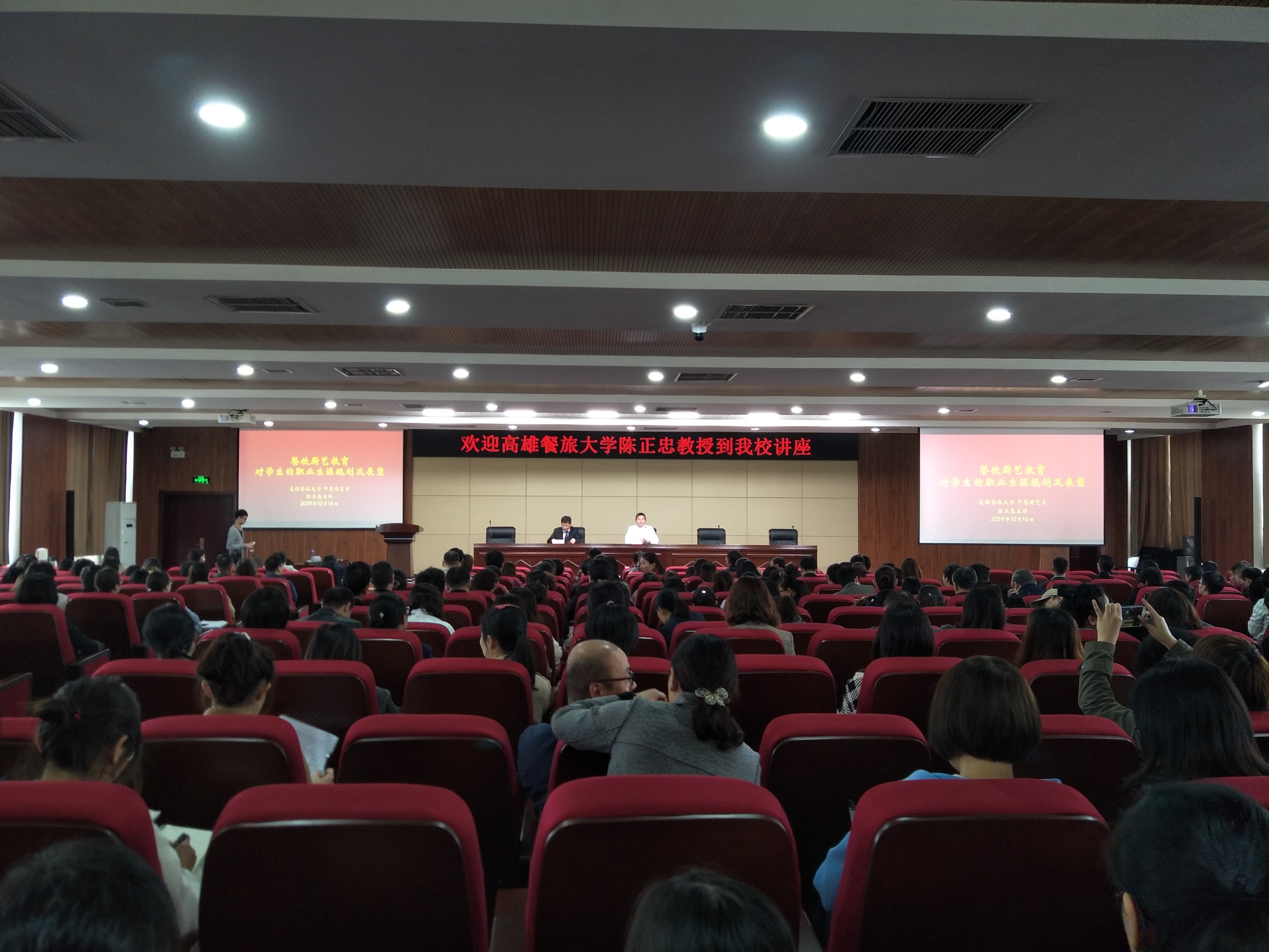 10月16日下午,pp电子邀请高雄餐旅大学陈正忠教授在综合楼C座4楼会议室做题为《餐饮厨艺教育对学生的职业生涯规划及展望》专题讲座。院长文广轩和全体教师一同听取了讲座,讲座由副院长徐永清主持。