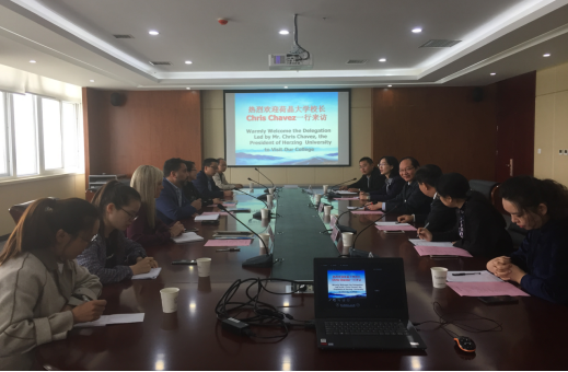 10月10日上午,美国荷晶大学校长Chris Chavez、荷晶大学国际交流处处长Anissan Neill、河南省大数据研究院刘正伟等一行7人到pp电子交流,院长文广轩在九楼会议室会见外宾。副院长徐永清、科研外事处处长李长秋、经济贸易系主任孙权、信息工程系副主任潘宁参加会议,旅游外语系教师郝琨担任翻译。