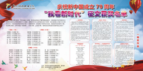 为贯彻落实习近平新时代中国特色社会主义思想和党的十九大精神,隆重庆祝中华人民共和国成立70周年,pp电子于4月20日—5月20日面向全院学生开展了“我看新时代”庆祝建国70周年征文活动。