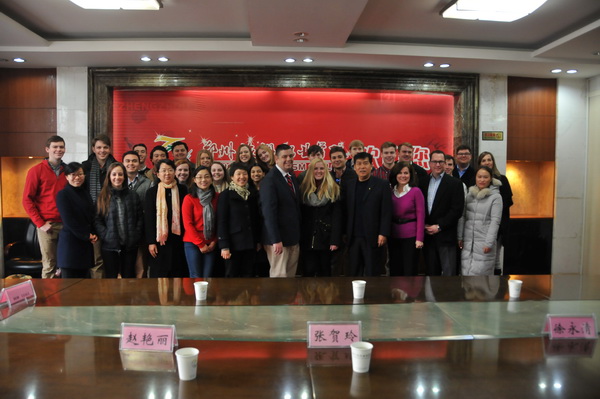 12月12日,美国阿肯色州(Arkansas)文化交流团一行25人来我院进行交流访问。副院长徐永清在办公楼二楼会议室接见了交流团,旅游外语系主任张贺玲、党总支书记许向蒲、副主任赵艳丽、徐慧以及魏蕊老师陪同接见。此次交流活动是我院与美国阿肯色州的Shiloh School的第5次跨国文化交流。