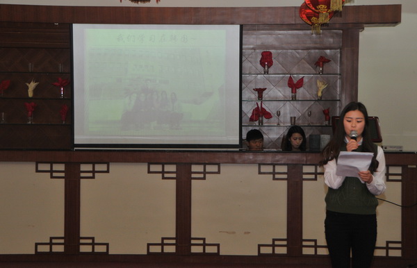 2015年1月8日下午,我院第三届韩国交换生学习成果汇报会在实训楼中餐厅举行。5名韩国留学生、6名中国留学生汇报展示了学习成果。学院党委书记岳俊华、院长樊豫陇、副院长徐永清出席会议。会议由科研外事处处长李长秋主持。