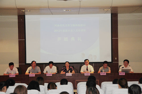 6月28日上午9时,2012年巩义市旅游从业人员培训班开班仪式在我院信息中心一楼报告厅举行。来自巩义市16家旅游企业的56名学员参加了开班仪式。仪式由学院副院长张建军主持,党委书记岳俊华、院长樊豫陇、巩义市副市长贺传伟、巩义市文物和旅游局副局长王建红等与会。培训班由巩义市文物和旅游局主办,我院承办。这是我院继今年承办2012年河南省旅行社中高级管理人才培训班之后,承办的又一个行业培训班。