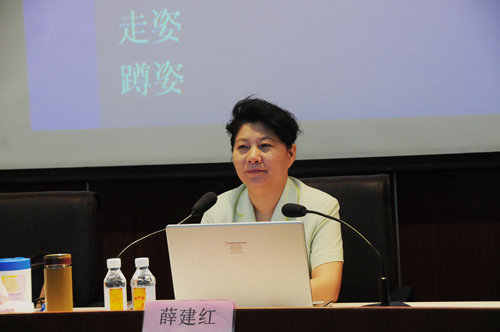 郑州大学旅游管理学院旅行社管理系主任、郑州大学礼仪实训中心主任、硕士生导师薛建红副教授在授课中