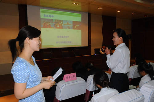 班会设计二等奖获得者刘开萌老师在《奥运精神》主题班会上