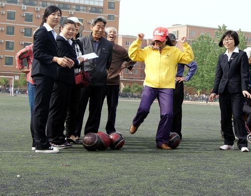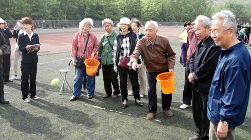 为倡导健康、文明的生活方式,丰富老干部们的文体生活,学院组织了老干部趣味运动会。近40位老干部代表,参加了足球射门、网球入桶、托乒乓球25米往返走、赶猪(软式排球)25米往返跑等四个项目的趣味比赛.