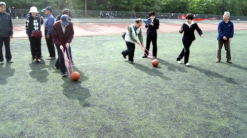 赛场上老干部们个个充满动力、热情高涨,比赛场面热烈和谐,活动妙趣横生。