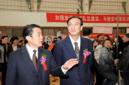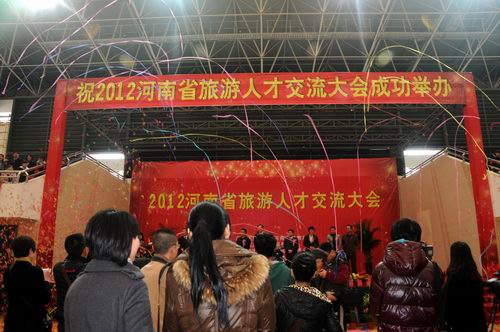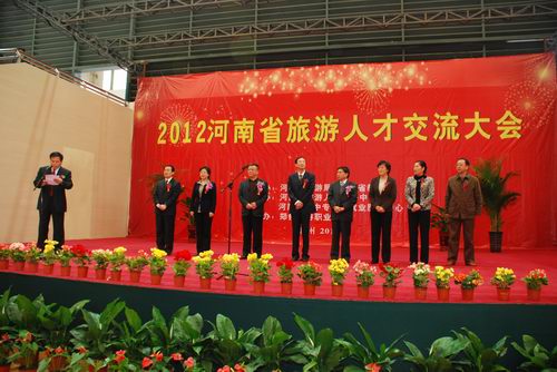 3月18日上午9时,由河南省旅游局和河南省教育厅联合主办的“2012河南省旅游人才交流大会”在我院体育馆开幕。