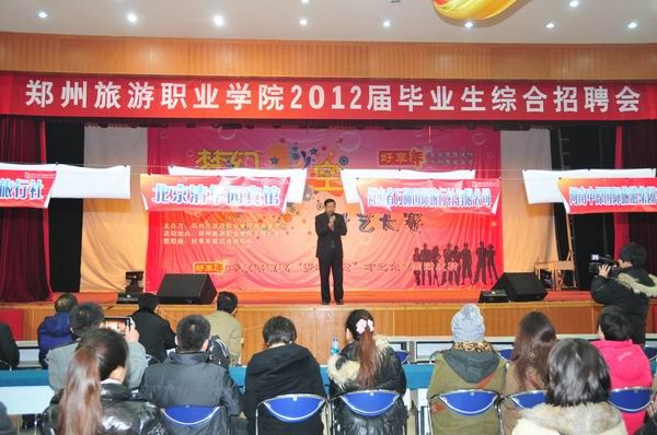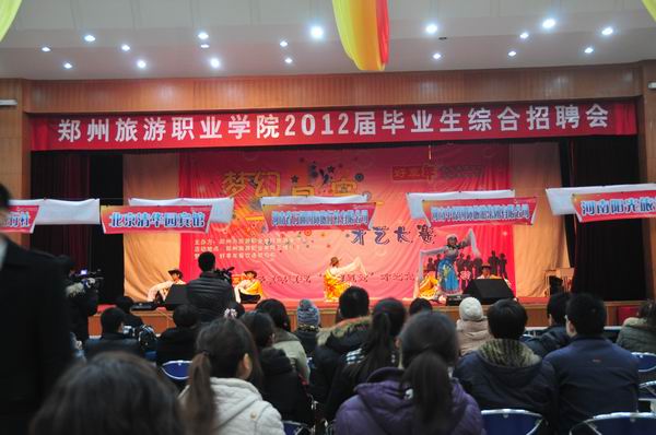 12月17日,我院在学院礼堂举行了2012年毕业生综合招聘会。招聘会开幕之前首先表演了由院旅游管理系精心筹办的才艺展示,让众多前来招聘的单位对旅游学院的学生有了更全面的了解。 党委副书记、院长陈锡畴在开幕式上首先讲话,向与会80余家用人单位热情推介我院毕业生。
