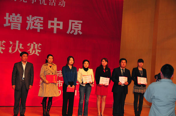 2011年11月2日上午,旅游外语系习晓庆老师代表我院参加郑州市教育局党委举办的“为民服务、增辉中原”演讲比赛决赛并获奖。