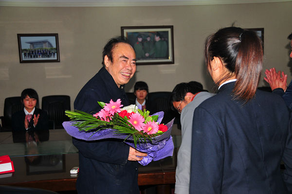 旅游管理系罗亚平主任在主持致辞中介绍了陈蔚德教授的从业资历、从教生涯以及他崇高的作风品行,让与会同学和老师们更加深入地了解了陈教授高尚的品德修养和严谨治学的态度。学生代表刘萌萌充满感情的发言,表达了对陈教授在教学中平易近人风范的衷心敬佩以及对师生离别的不舍之情。随后,她代表我院师生向陈教授敬献了鲜花。