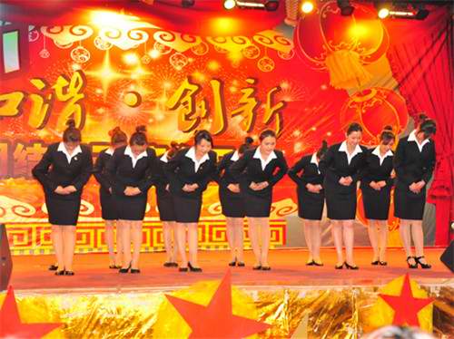 比赛正式开始,西校区代表队率先进行表演,他们按照站姿,交叉式蹲姿,坐姿,引领的顺序进行展示,又向同学们表演了一段交谊舞。接下来,外语系代表队向同学们表演了充满活力的礼仪操,并通过接待不同国家的客人来展现礼仪。生动优雅的表演赢得了阵阵掌声。在商贸系第一代表队表演了情景剧《招聘》之后,旅管系第一代表队上场,他们以整齐的动作,优雅的气质完成了基本礼仪展示,情景剧《旅院旅行社接待》表现出同学们的青春风采。