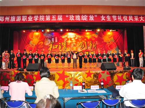 2011年4月13日下午4:30,我院在三楼礼堂举办了第五届“玫瑰绽放校园行”女生节礼仪风采大赛决赛。院党委副书记、院长陈锡畴,副院长张建军,学生处处长闫浩、旅游商贸系主任何蜀川,旅游管理系党支部书记肖靖,旅游外语系党支部书记许向蒲,机电系党支部书记李春明,酒店管理系党支部副书记郭防出席了本次比赛。艺体部主任薛月,学生处副处长苗珍,王红卫老师,杨从客老师,刘笑艳老师,崔灵玲老师,魏玮老师担任评委。