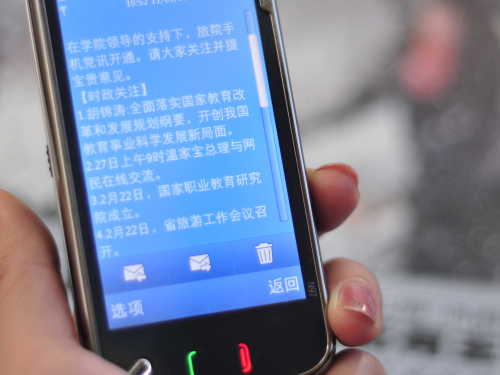 3月1日,学院党委宣传部向全校200多名党员发出首期《手机党讯》。它利用“飞信”服务平台保证用户永不离线,实现无缝链接的特点,邀请全院党员的移动手机号码,加入“旅院手机党讯”联系网,之后通过飞信联络平台,把相关信息编制成由“时政关注”、“旅院要闻”、“支部动态”、“理论学习”、“文会信息”等版块组成的《手机党讯》,发送给全体党员,方便快捷、经济实惠。