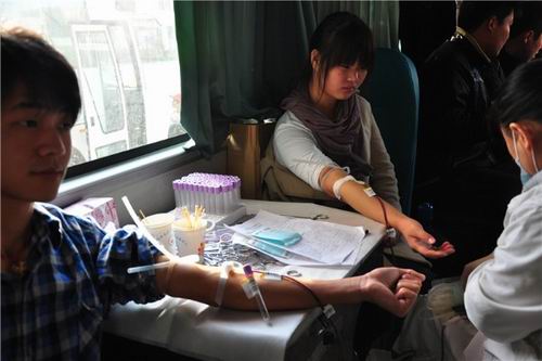 我院共招募了407名学生、50余名志愿者参加了本次活动。献血开始,同学们就排起了长长的队伍,在河南省血液中心工作人员和志愿者的引领下,同学们开始填表、体检、化验和抽血。院团委学生干部为等候献血的同学在一楼多媒体教室播放了电影,整个活动过程井然有序。从献血同学的表情中我们看到了他们的自豪与快乐,为社会做有意义的事,使他们体会到了心灵的愉悦。