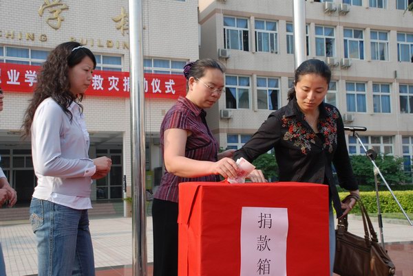 简短的仪式后,各系代表纷纷上台捐出本系学生的捐款。随后,在学院陈锡畴院长的带领下,学院教职员工纷纷慷慨解囊,踊跃捐款,以表达对灾区人民的一片深情和爱心。截止发稿之时,共收到捐款8万余元。大家纷纷表示,面对突如其来的灾情,我们虽不能亲赴现场抗震救灾,但有责任、有义务尽自己的绵薄之力,向灾区群众伸出援助之手,帮助他们尽快渡过难关,早日重建家园。