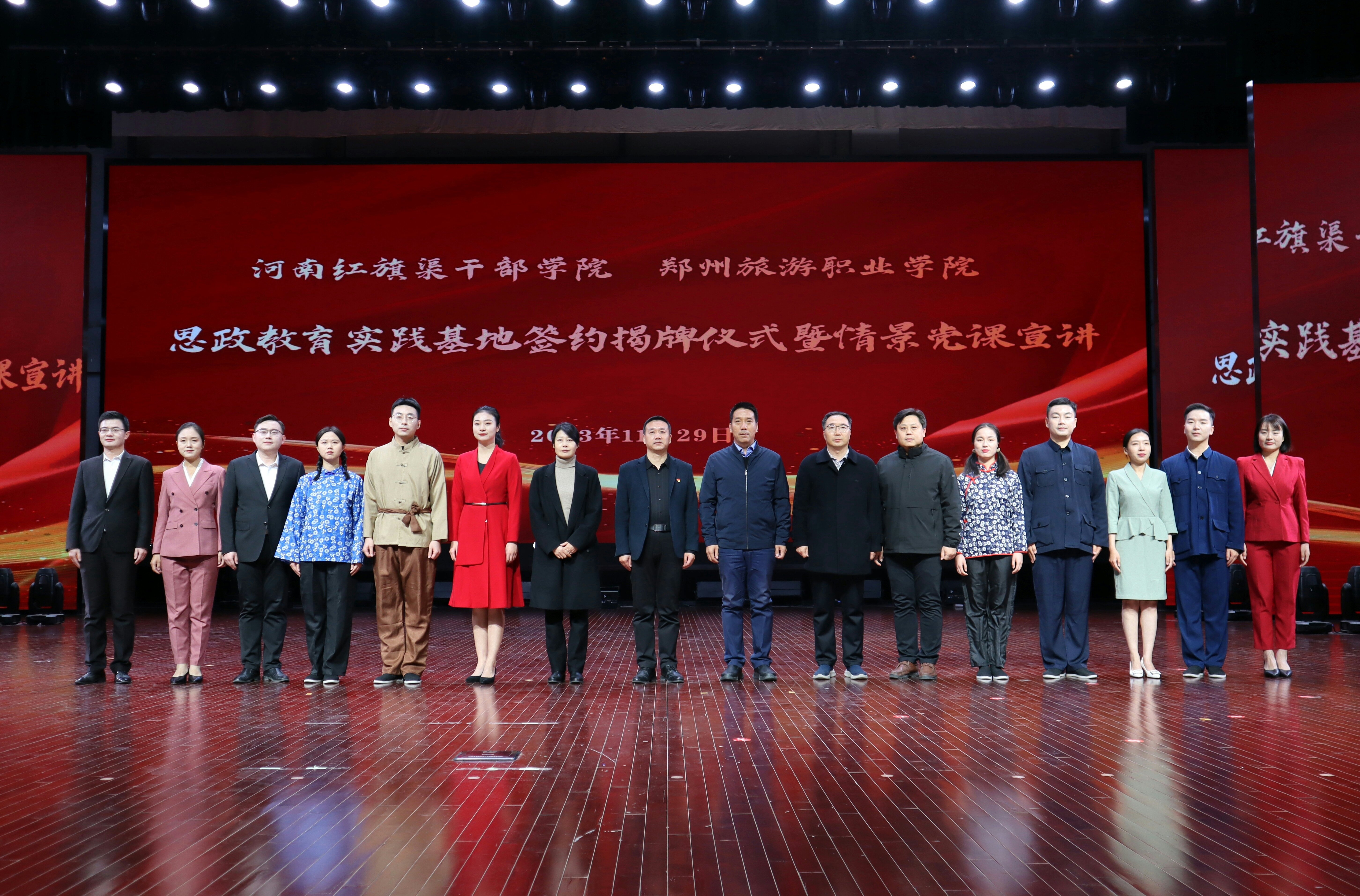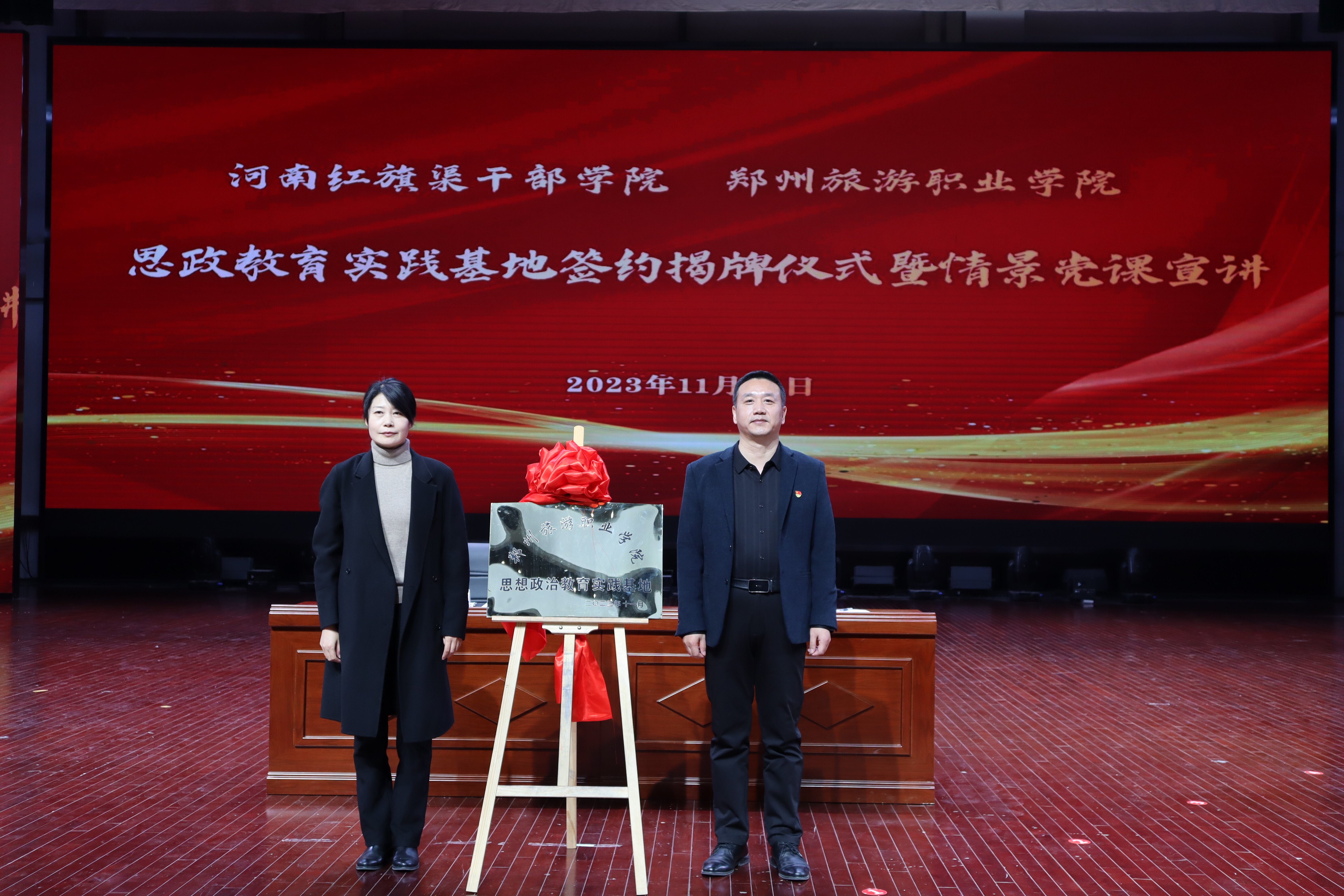 11月29日下午,pp电子游戏平台网站与河南红旗渠干部学院“思想政治教育实践基地”签约揭牌仪式暨情景党课宣讲活动在pp电子游戏平台网站象湖校区艺术中心举行。河南红旗渠干部学院党委委员、副院长王志浩;pp电子游戏平台网站党委书记王艳红,党委委员、副院长张建军,党委委员、纪委书记毛艳,党委委员、组织部部长闫浩出席活动。活动由毛艳主持,pp电子游戏平台网站各行政教辅、二级学院党员干部和学生代表等参加。