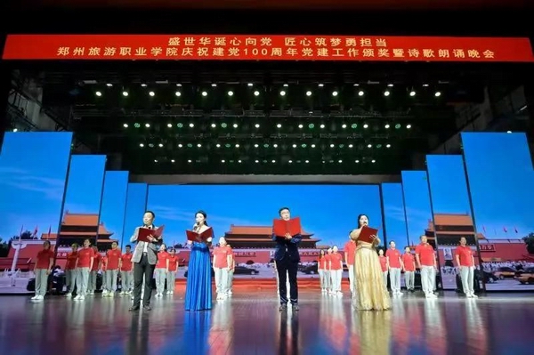 整场活动分为“传承——坚定信仰,薪火相传”“奋斗——实干兴邦,榜样力量”“追梦——担当使命,再铸辉煌”三个篇章,参加朗诵的师生们以诗筑梦,以诗传情,将对党和祖国的热爱、对先辈的崇敬都浓缩在了一句句饱含深情的诗歌里,融入进一次次铿锵有力、令人热血沸腾的诵读中。