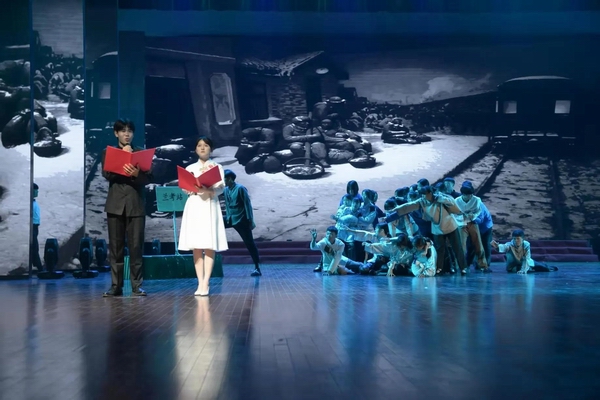 在《永不褪色的旗帜》《永不磨灭的丰碑》《幸福中国一起走》等几个精彩节目中,师生们用抑扬顿挫的嗓音和沉浸式表演将那份对祖国深沉而热烈的爱表达得淋漓尽致,将大家的思绪带去那个纯真炙热的岁月,现场观众无不为之动容,掌声不断。