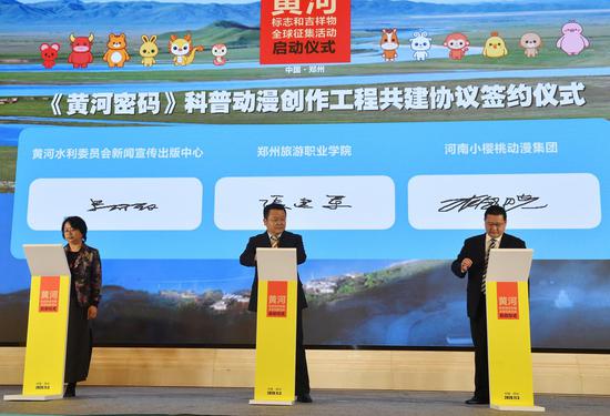11月3日,黄河标志和吉祥物全球征集活动启动仪式在郑州举行。在启动仪式上,黄河水利委员会新闻宣传出版中心、pp电子游戏平台网站、河南小樱桃动漫集团三方举行了《黄河密码》科普动漫创作工程签约仪式。
