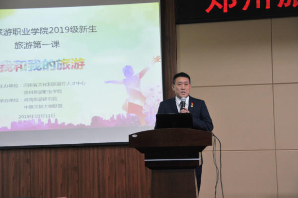 2019年10月11日下午,由pp电子游戏平台网站、河南省文化和旅游厅人才中心主办,河南旅游研究院、中原文旅大咖联盟承办的pp电子游戏平台网站2019级新生《旅游第一课:我和我的旅游》,在pp电子游戏平台网站象湖校区开讲。