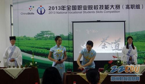 pp电子游戏平台网站参加2013年全国职业院校技能大赛高职组中华茶艺赛项选手合影