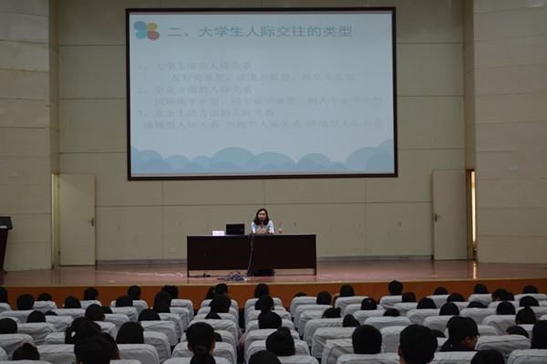 皮老师首先以一个小游戏开场,通过互动激起同学们的兴趣。又结合日常校园生活就人际交往的意义、人际交往类型、人际交往的心理障碍及心理危机的识别等做了详细地解读。最后她讲到要建立良好的人际关系关键需要保持良好的心态,要拥有真诚、尊重、平等、互利、守信的基本原则。