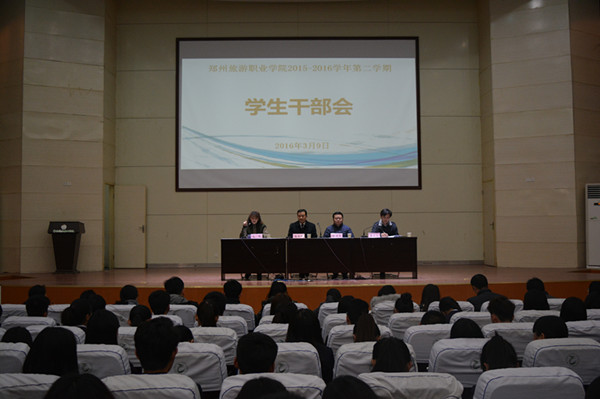 3月9日下午,2015-2016学年第二学期学生干部工作会在西报告厅召开。院长樊豫陇教授、副院长张建军、纪委书记兼学生处处长毛艳、团委代书记李立功出席会议。副院长张建军主持会议。
