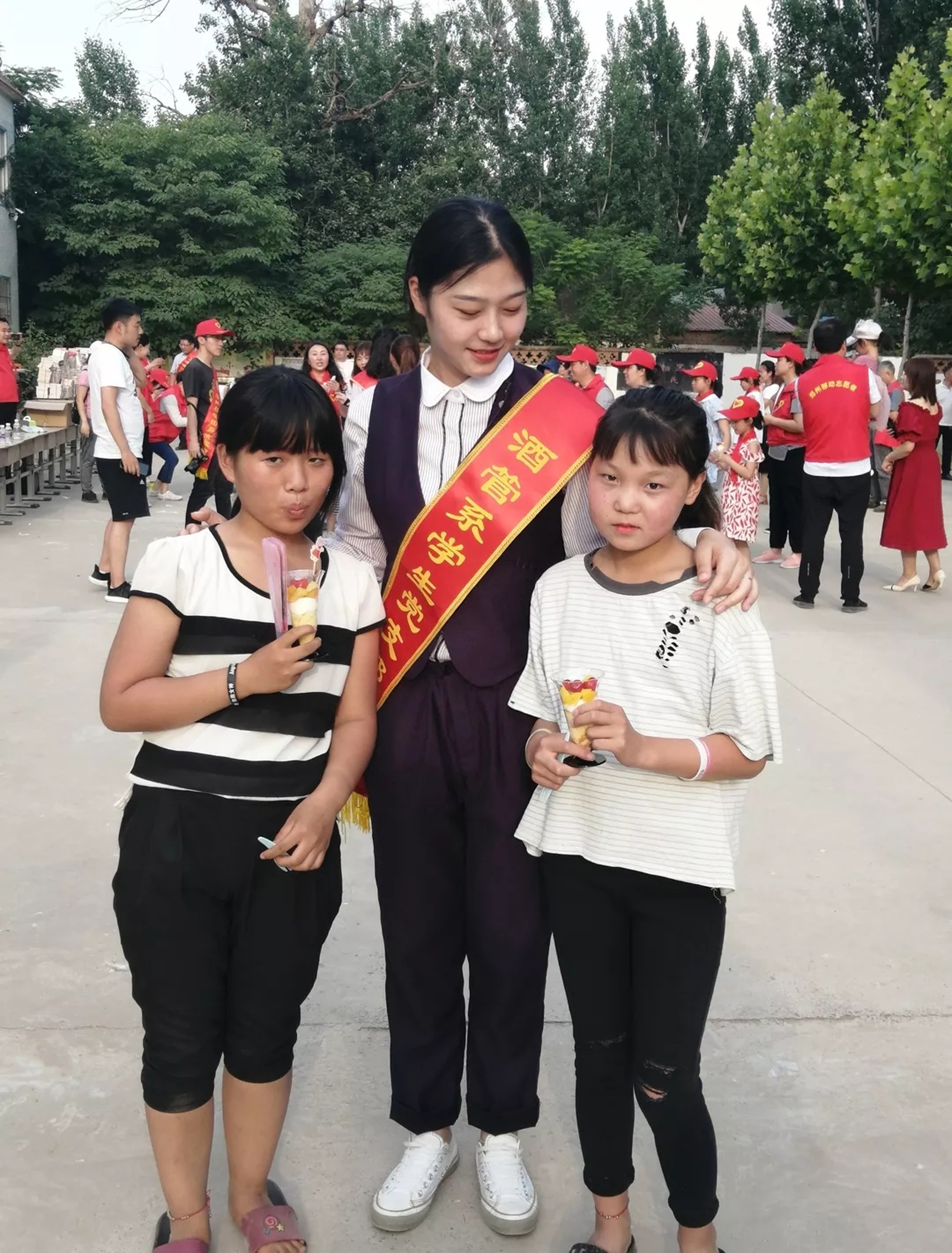 2019年6月1日,我积极响应国家精准扶贫政策与党支部号召,参与了“志愿童行”下乡扶贫活动。贫困村胡辛庄位于中牟县,开封县和尉氏县的交界处,村里只有一条硬化过但已年久失修的主路,大部分家户靠种地为生。经济的紧张使该村小学的发展状况也不尽如人意,学校四个年级只有不到50人。身为志愿者的我提前了解了该地情况,第一站就到了村小学。我同孩子们交流,了解他们的家庭情况,并耐心解答他们关于学习上和生活上的困惑。除此之外,我们还为学校和孩子们捐出儿童书包、书籍、玩具等物资。时至今日,那天的场景在我心中依然记忆犹新,我和孩子们拥在一起聊家常,谈理想,一起唱响“我和我的祖国”,虽然那天天气很热,我们都汗流浃背,但我们内心却比太阳更火热。