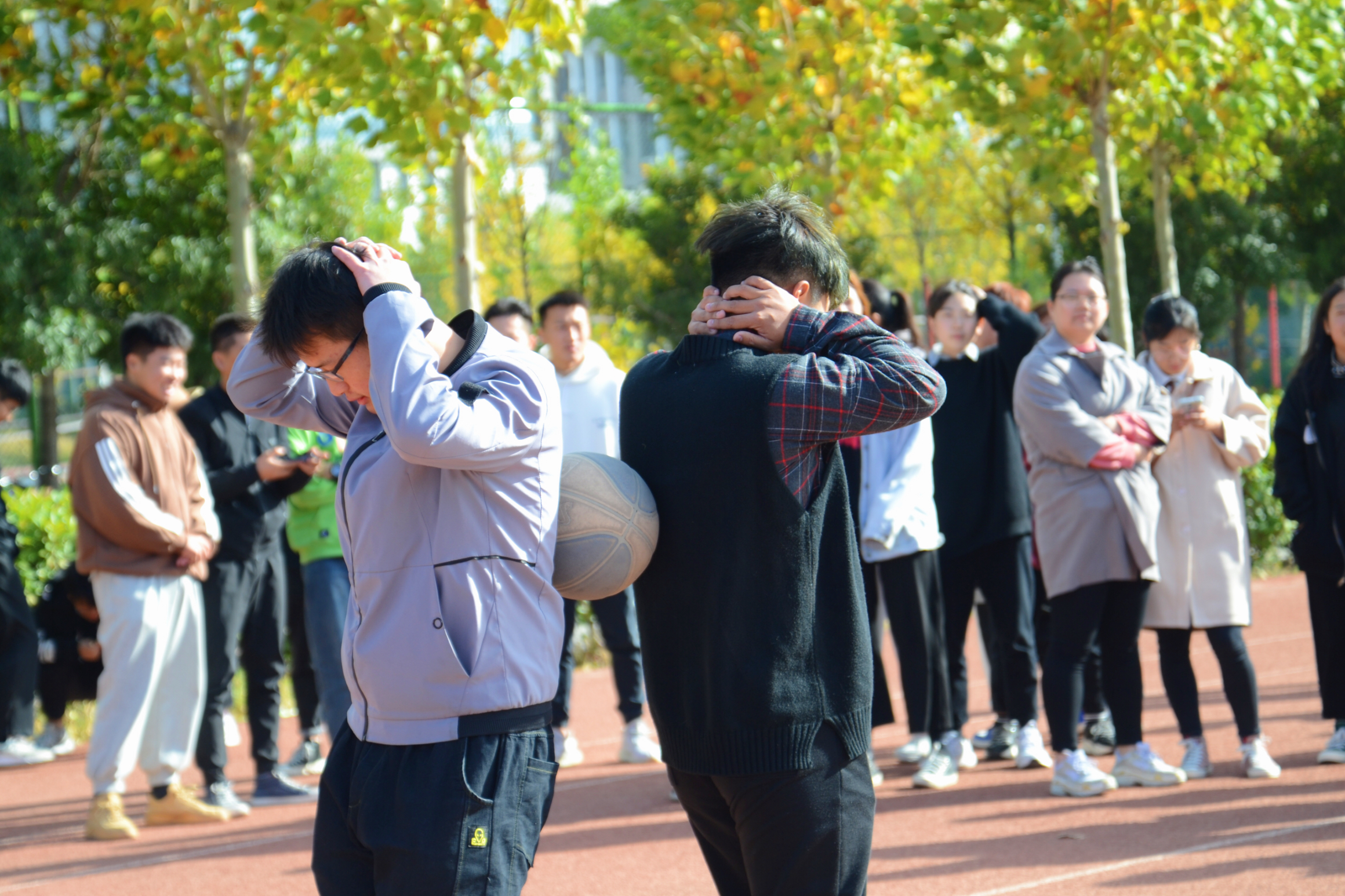 “心心相印”活动,旨在考验两人的默契配合,只有相互信任,相互包容,才能将篮球送达终点。同学们一步一脚印,从慢到快,过程中有失败,但是他们没有放弃,从头再来,坚持完成比赛。