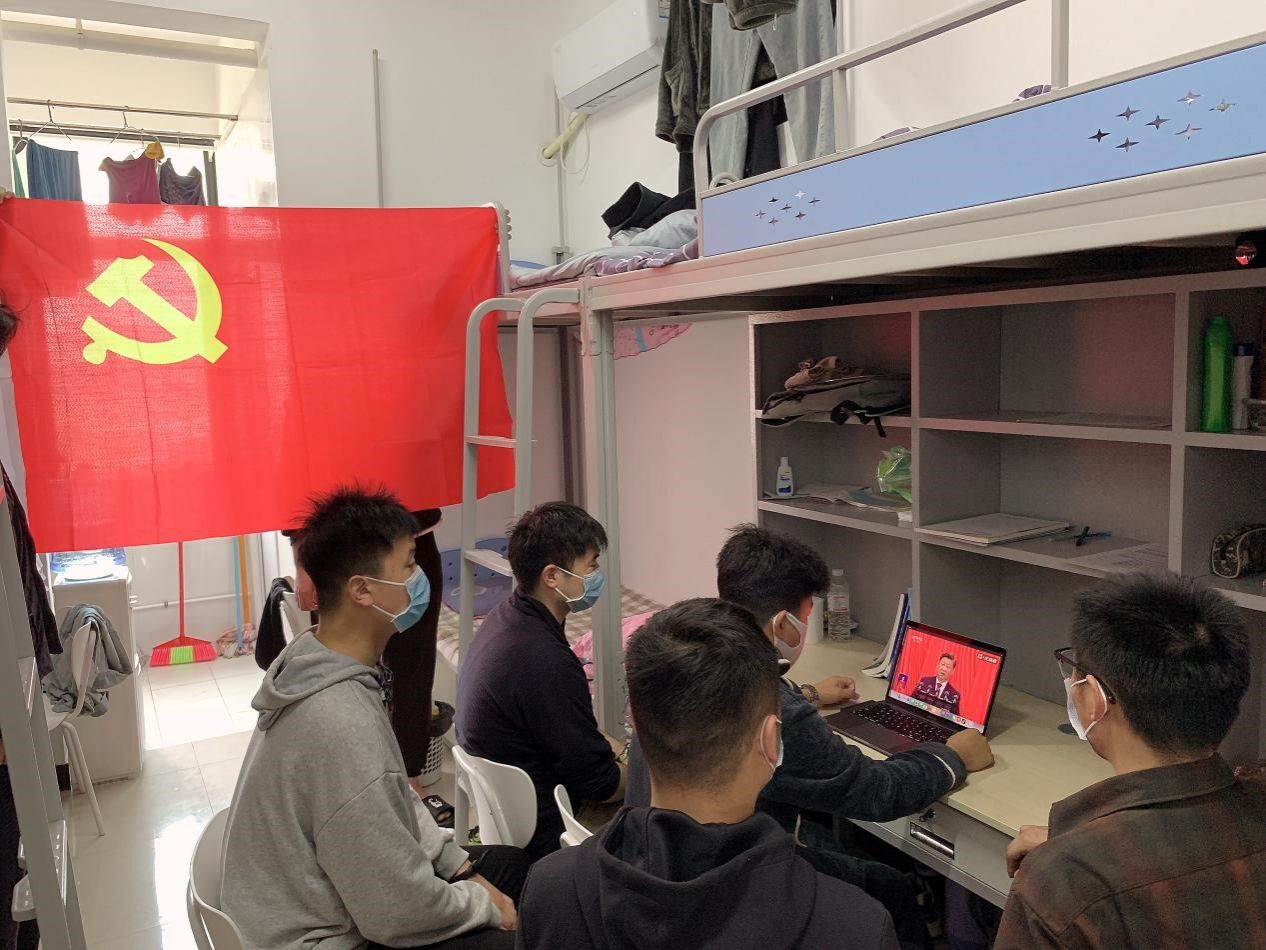 2022年10月16日上午,机电工程学院认真组织师生收听收看习近平总书记在中国共产党第二十次全国代表大会上的报告。党员干部深入学生宿舍与学生共同观看了大会直播,并对报告进行了热烈讨论。广大青年学生在不同场所通过电脑、手机等平台收看了大会的直播。