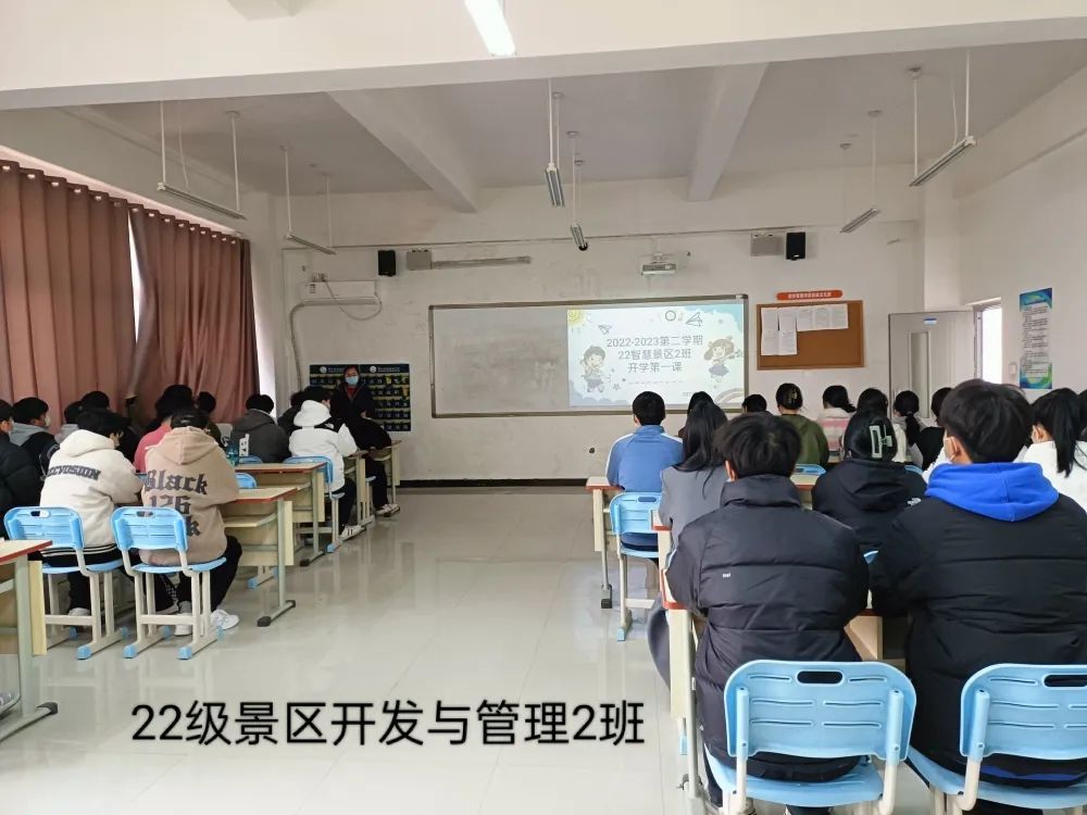 为深入学习贯彻习近平新时代中国特色社会主义思想和党的二十大精神,做好新学期大学生思想政治教育和开学安全教育,2月20日下午,旅游管理学院组织各班召开开学典礼暨“开学第一课”主题班会。班会由各班班主任主持,学院各班学生参加班会。