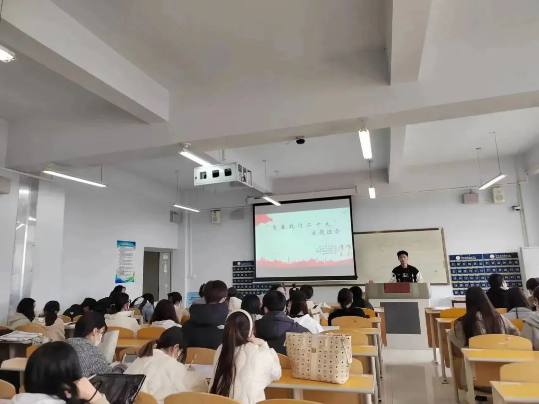 为深入学习宣传贯彻党的二十大精神,坚持聚焦立德树人根本任务,厚植爱党爱国爱社会主义情怀,引导学院学子从学习过程中汲取奋进力量。现代服务学院各班学生于2023年3月20日于1A教学楼开展“青春践行二十大”主题班会。