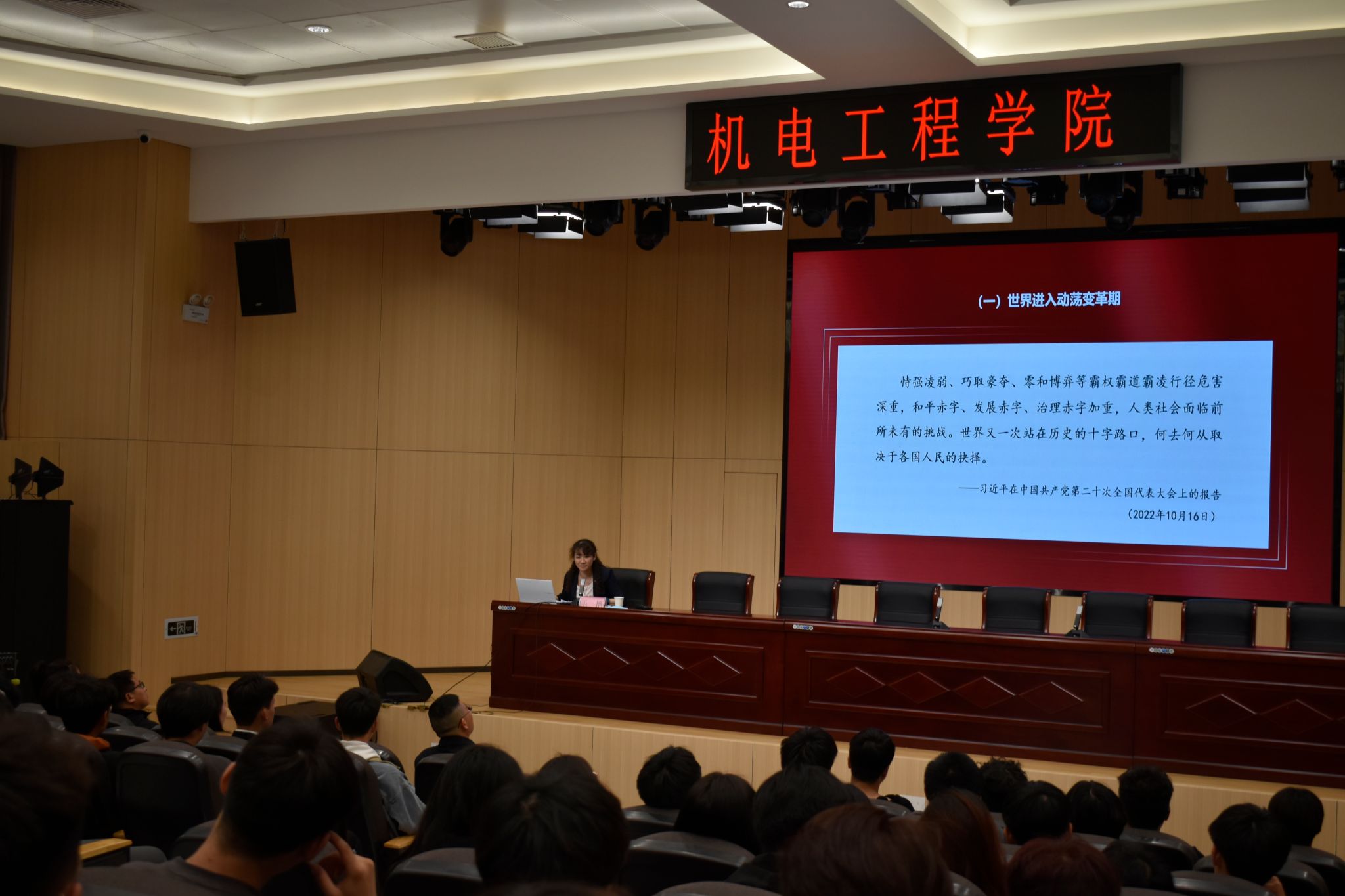 为深入学习贯彻党的二十大精神,进一步加强大学生思想政治教育,2023年4月12日,机电工程学院党总支组织开展“学习宣传贯彻党的二十大精神”主题讲座。本次讲座特邀校党委委员、纪委书记毛艳授课。机电工程学院党总支书记张培彦主持讲座,全体辅导员、2022年度全体入党积极分子和全体学生干部参加学习。