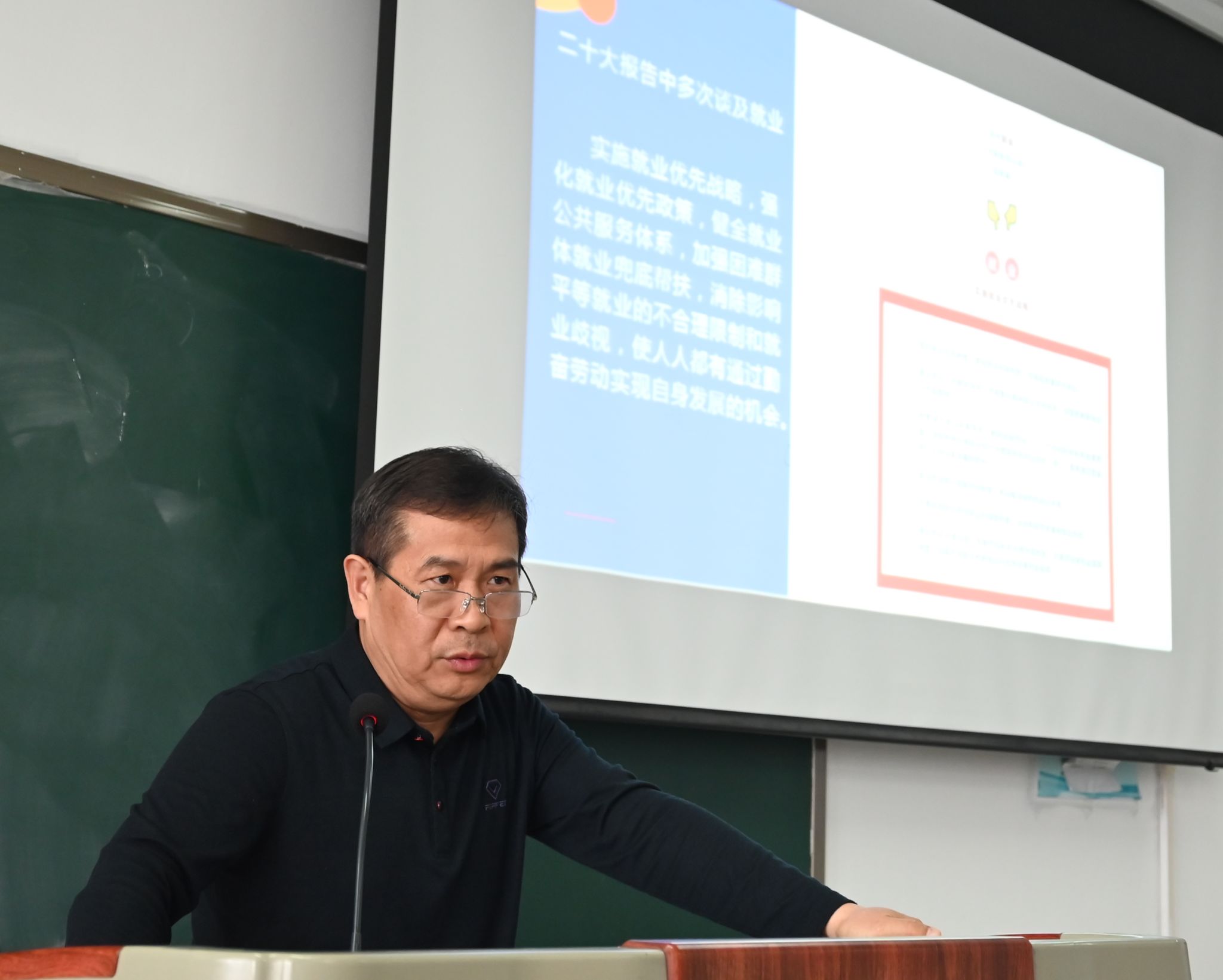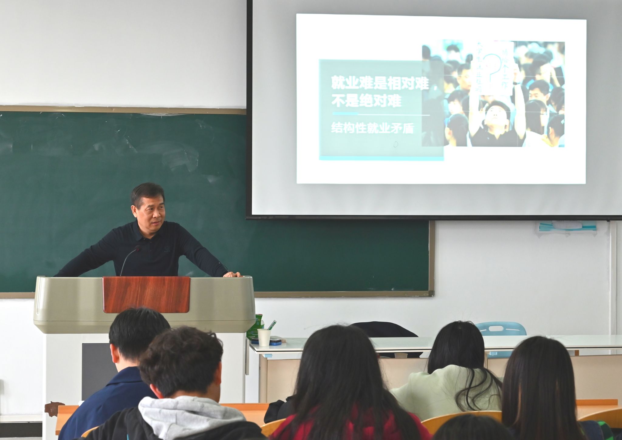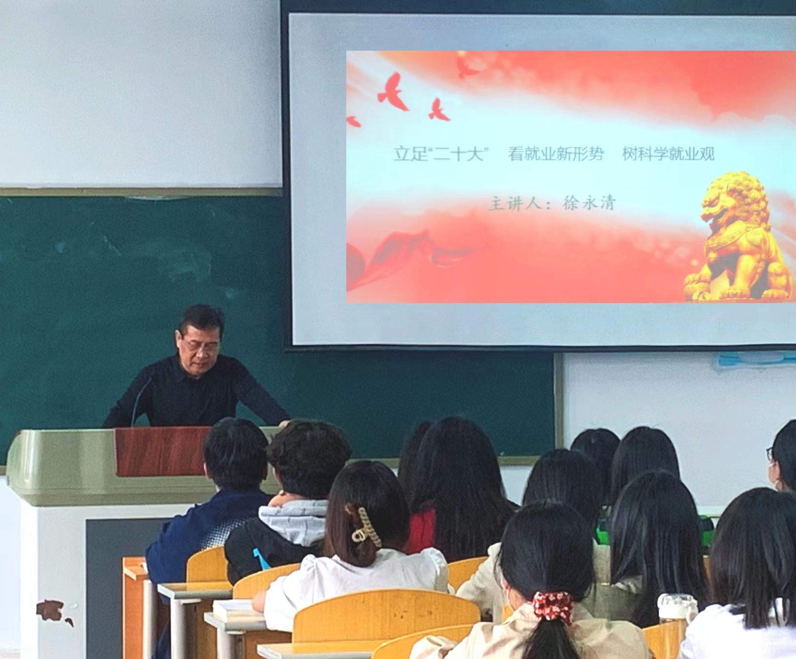 讲座上,徐永清以党的二十大报告中关于“就业”的论述以及2023年两会中提出的高校毕业生就业问题为切入点引入本次党课的内容。随后,徐永清立足新时代十年我国就业取得的显著成就,从宏观层面分析了当前的就业环境,指出结构性就业矛盾已成为毕业生就业中的突出问题。就业难是相对难,不是绝对难。
