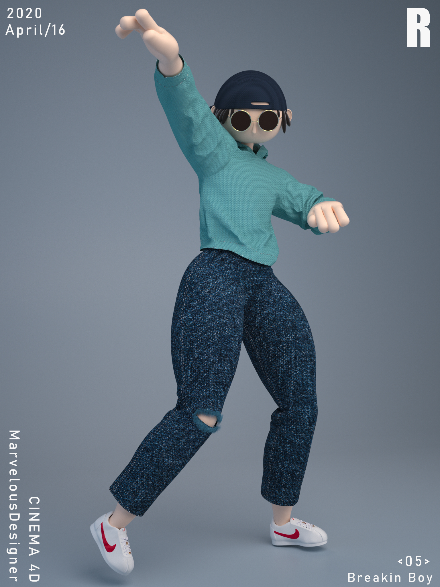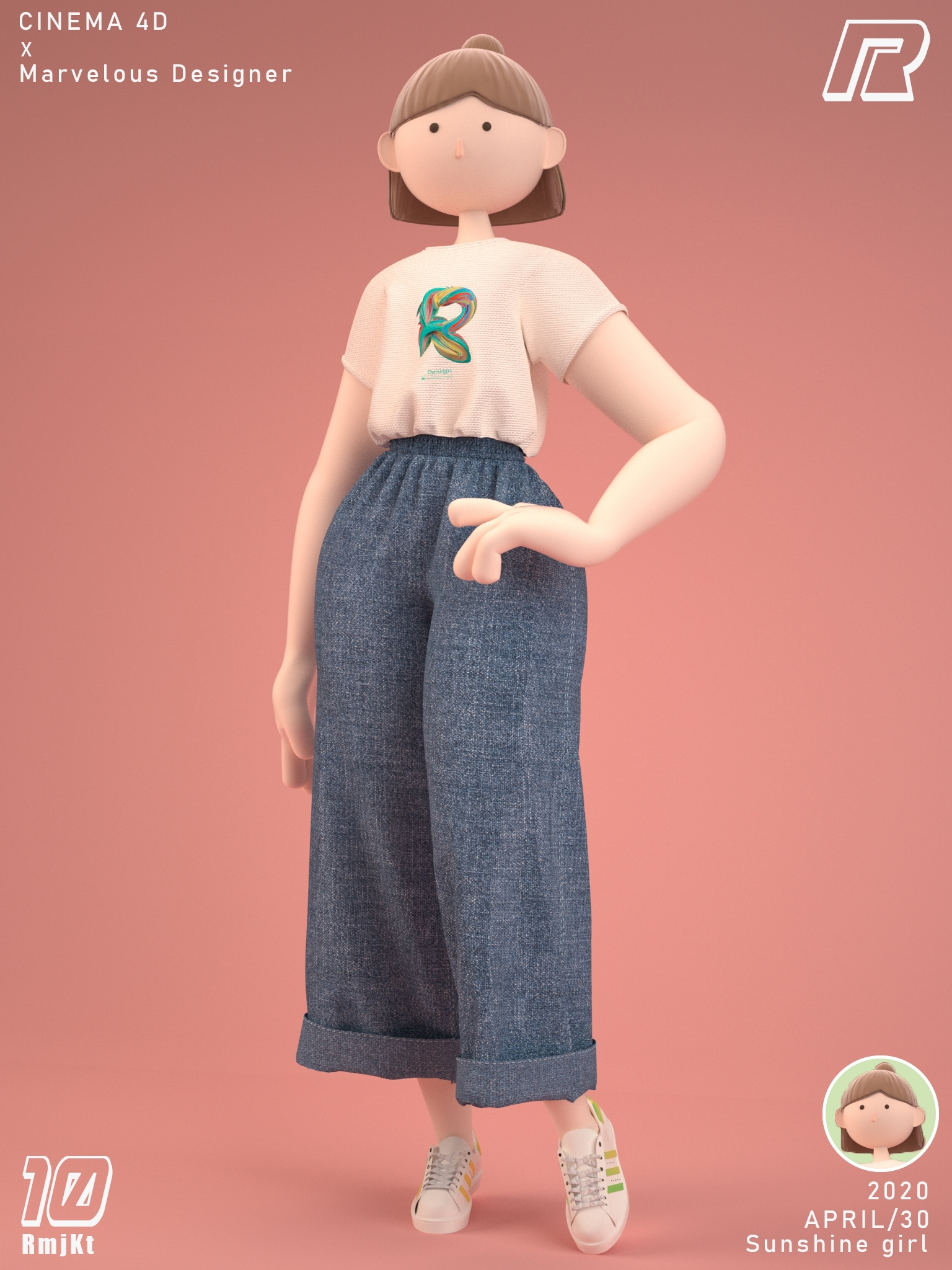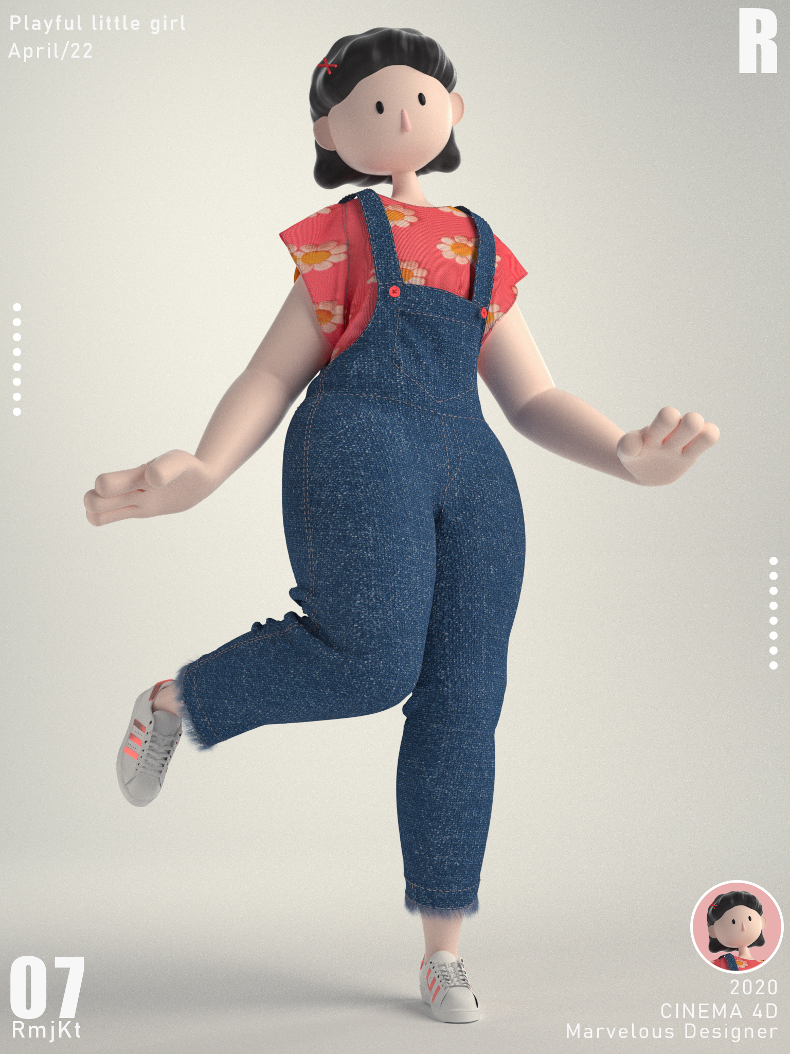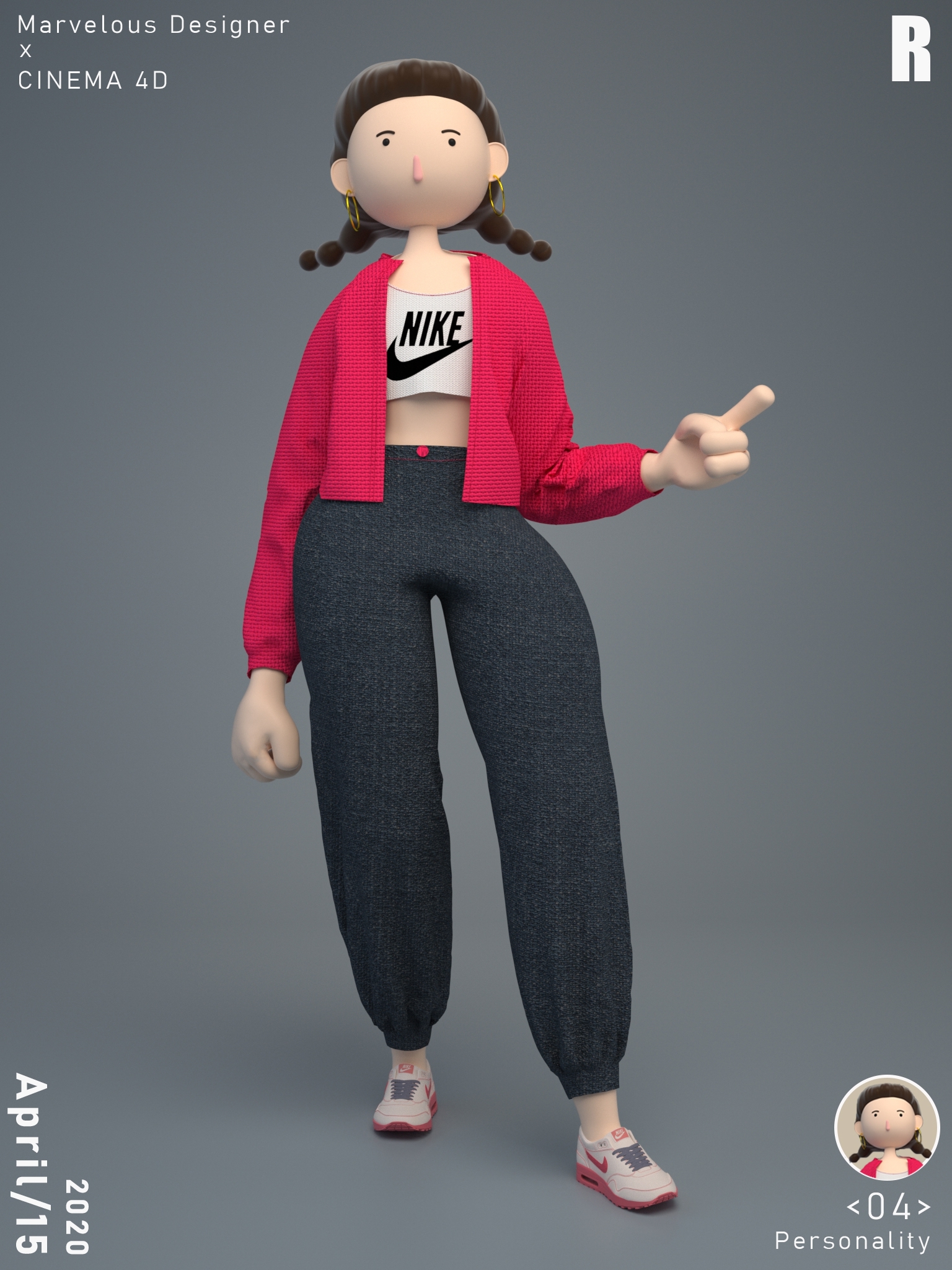 设计说明:近年来,越来越多的IP形象出现在生活中,虽然国内大多数还是以动物作为设计原型,但是IP设计远不止这些它可以更丰富。该作品将人物夸张化,体现独特创新、可爱、个性鲜明,给人以强烈的视觉体验,加深印象。用三维的表现手法,通过CINEMA 4D、Marvelous Designer和PS的运用,让IP角色的造型及纹理细节更生动也更具吸引力。