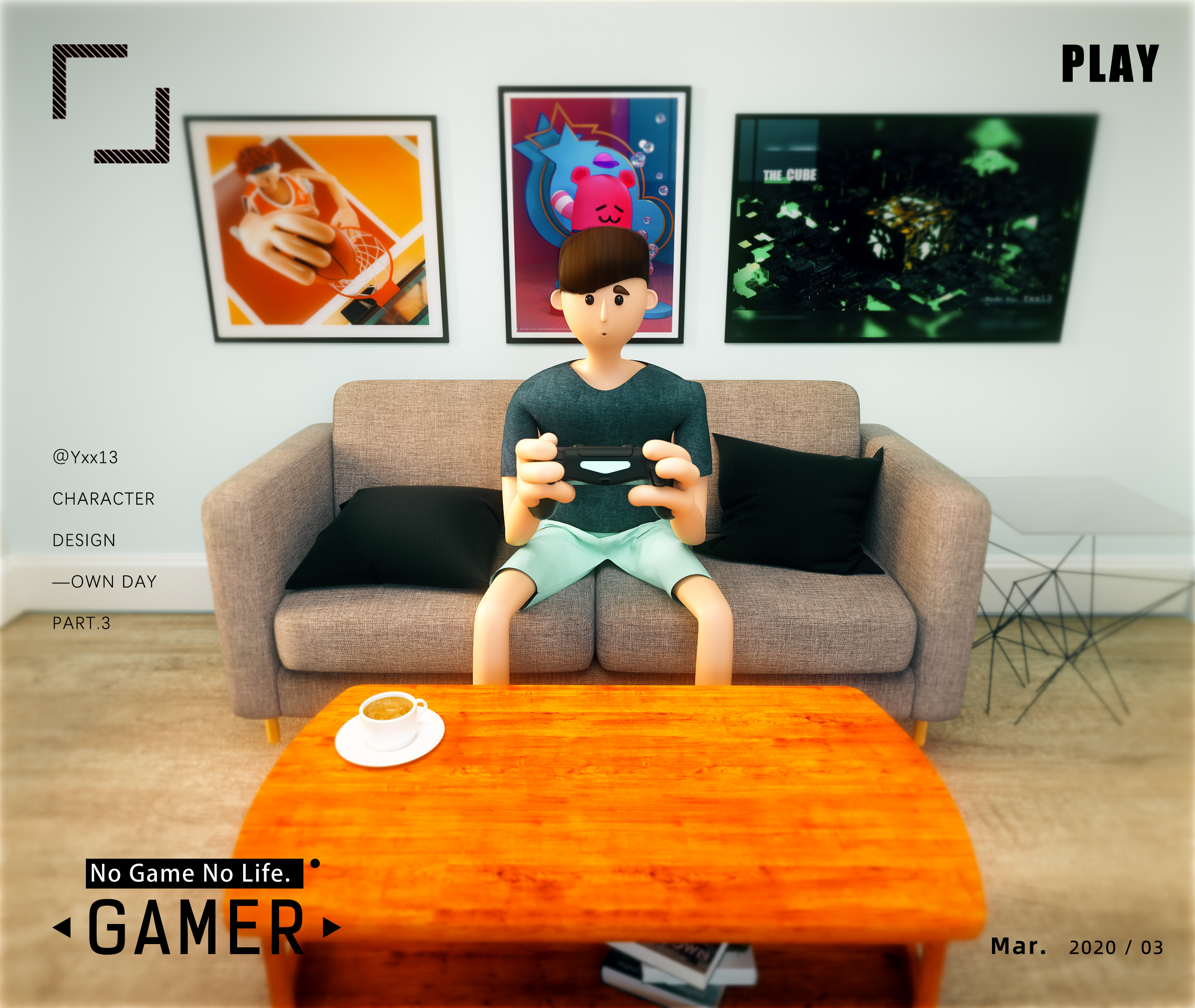 《普通的一天》这套作品是以我和同龄人的日常生活为灵感,记录一个青年的普通一天。本套作品由8张图组成,对应的场景分别是:起床、洗漱、游戏、工作、休息、电影、锻炼、入睡。
