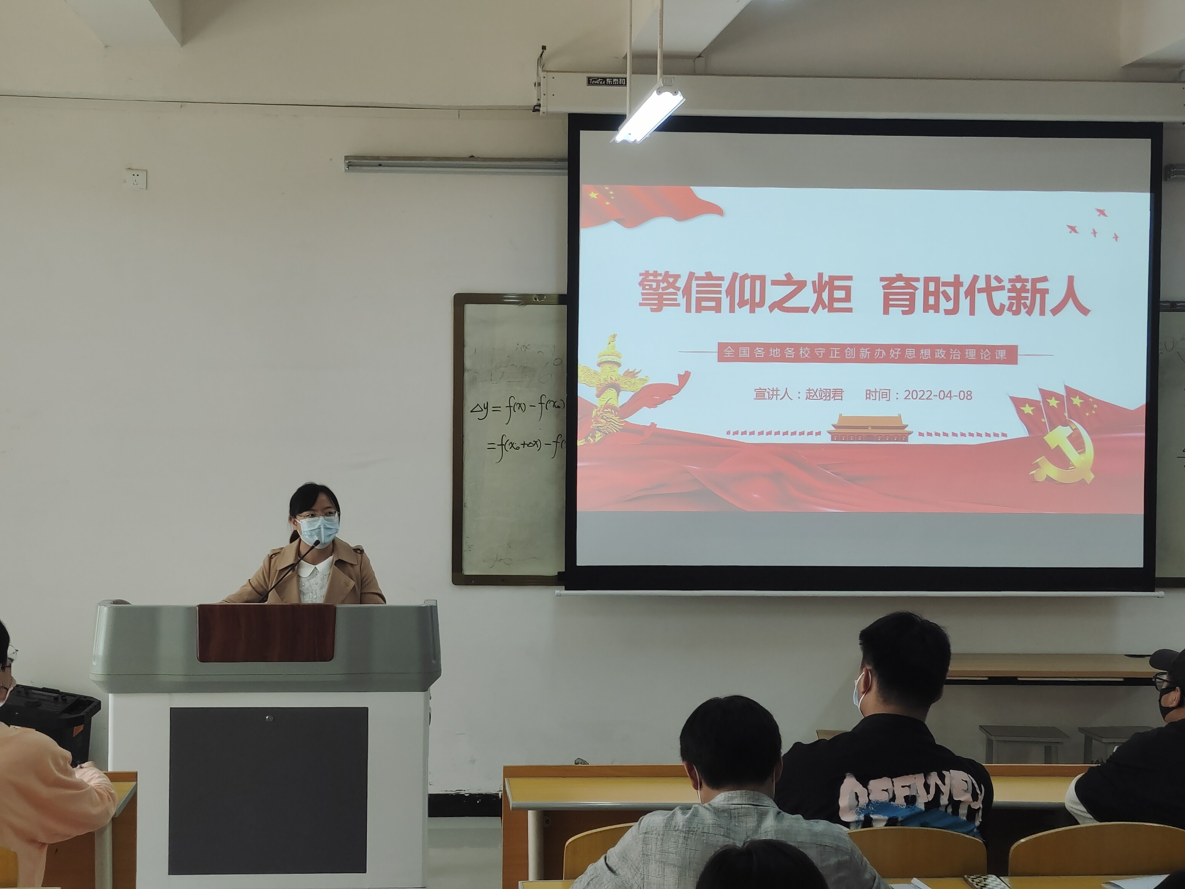 为了培养提升入党积极分子的思想觉悟与政治素养。2022年4月4日,信息工程学院党员赵奕君于4B111为入党积极分子上第十二讲党课——“擎信仰之炬育时代新人”。本次党课由学生党支部副书记赵翊君主讲,2021年度入党积极分子参加。
