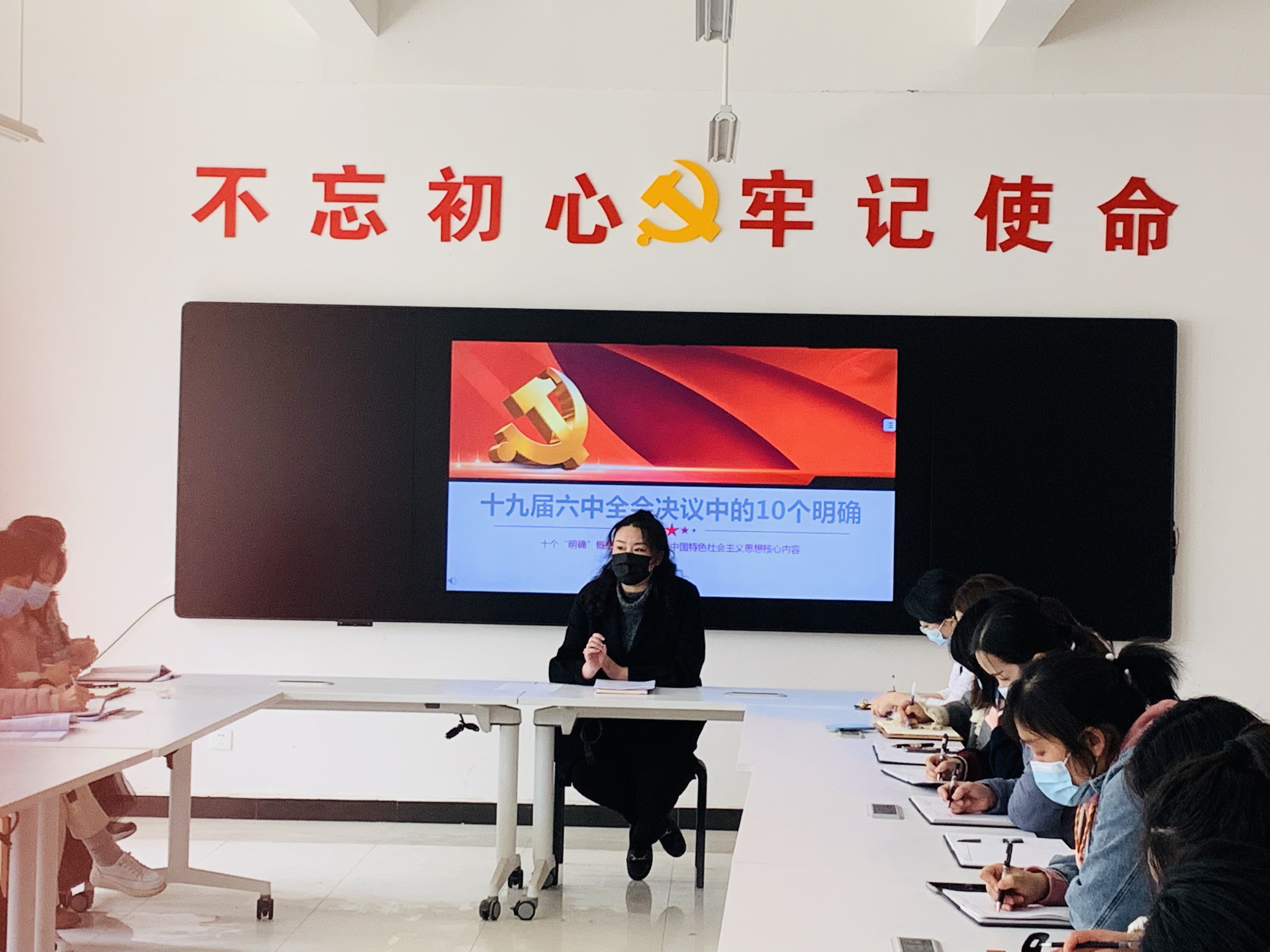会上,信息工程学院院长潘宁领学《十九届六中全会决议中的10个明确》,她强调党的十九届六中全会,是在我们党成立一百周年的重要历史时刻,在党和人民胜利实现第一个百年奋斗目标,正在意气风发向着全面建成社会主义现代化强国第二个百年奋斗目标迈进的重大历史关头召开的,具有十分重大的历史意义、政治意义、理论意义和现实意义。全体教师要围绕学习专题,联系个人思想工作生活实际,深刻领会了党的百年奋斗的重大成就、历史经验,始终把牢习近平新时代中国特色社会主义思想这个“主心骨”,更加自觉地用以武装头脑、指导实践、推动工作,为我院建设新篇章贡献更多智慧和力量。