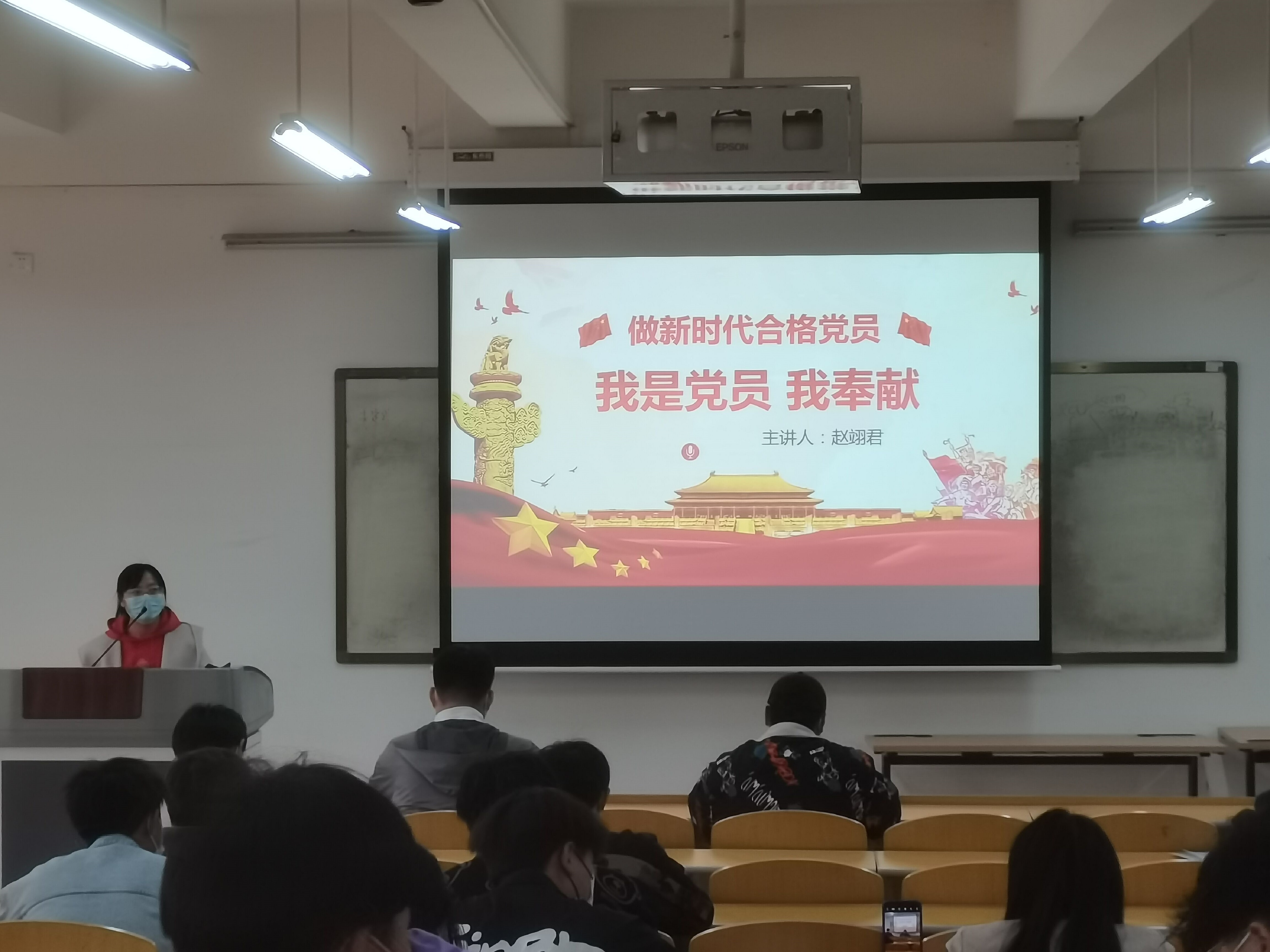 为加强入党积极分子的培养与教育,加深入党积极分子对党的基本知识了解,端正入党动机,提高入党积极分子综合素质,信息工程学院于2022年3月30日下午两点在4b111开展“做新时代合格党员|我是党员 我奉献”的入党积极分子党课,本次党课由学生党支部副书记赵翊君主讲,2021年度入党积极分子参加。