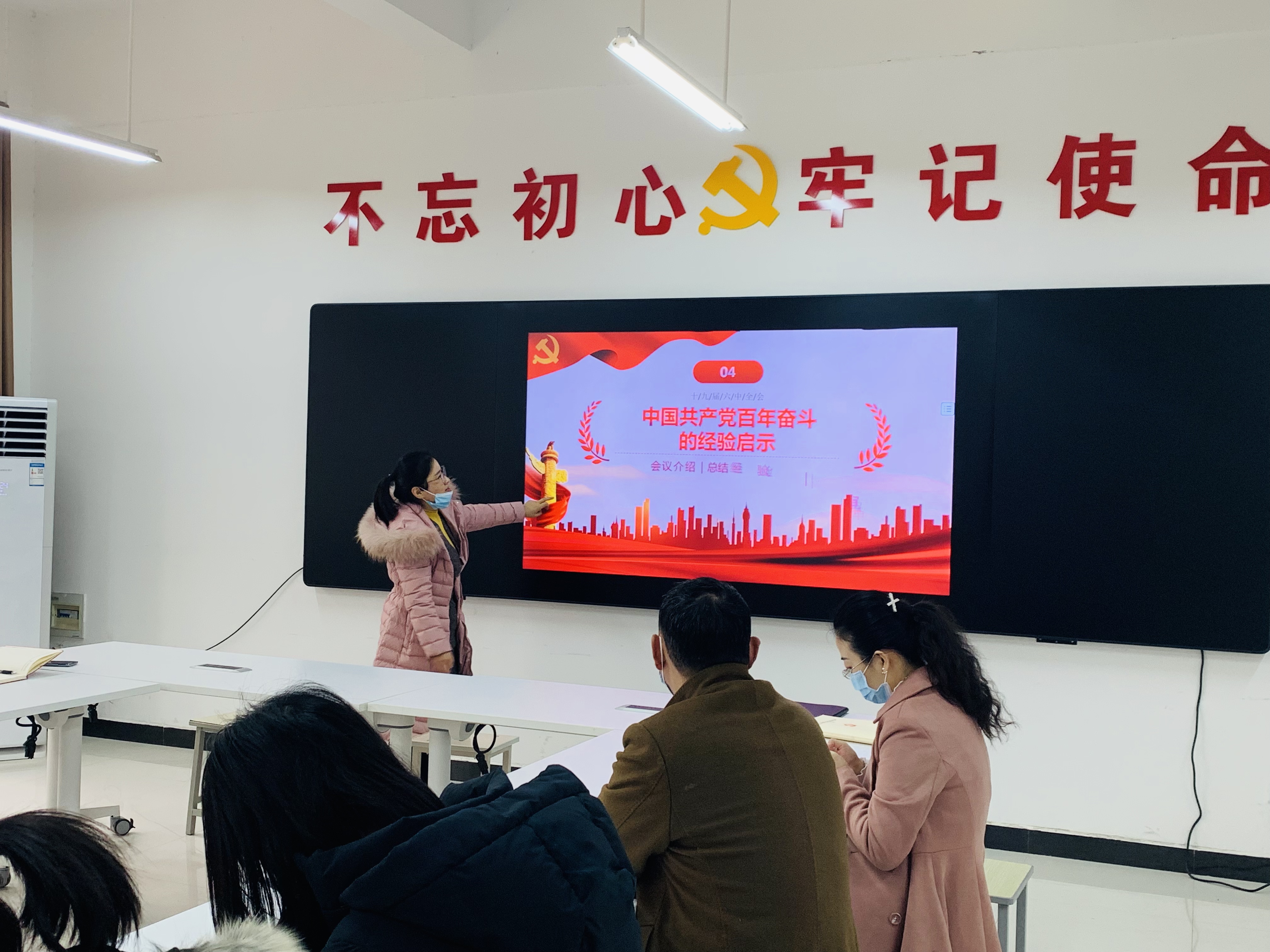 会上,教工支部书记王桂凤领学十九届六中全会精神,她从十九届六中全会会议介绍、中国共产党百年奋斗的辉煌成就、中国共产党百年奋斗的经验启示等方面进行讲解。党的十九届六中全会是党在成立一百周年的重要历史时刻,在党和人民胜利实现第一个百年奋斗目标、全面建成小康社会,正在向着全面建成社会主义现代化强国的第二个百年奋斗目标迈进的重大历史关头,召开的一次具有里程碑意义的重要会议,对于推动全党进一步统一思想、统一意志、统一行动,团结带领全国各族人民夺取新时代中国特色社会主义新的伟大胜利,具有重大现实意义和深远历史意义。