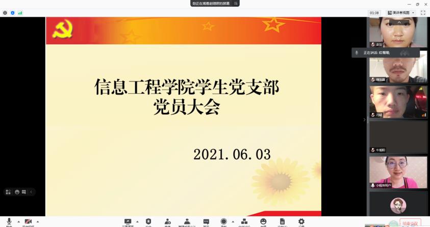 为发挥先进典型示范引领作用,激励广大党员在学院事业发展中鼓足干劲,担当作为,根据《pp电子游戏平台网站优秀共产党员、优秀党务工作者、先进基层党组织评选表彰办法(试行)》有关精神,信息工程学院学生党支部于6月3日20点召开党员大会视频会议,讨论评选优秀共产党员、优秀党务工作者,参加此次会议的有学生党支部全体党员,由党支部书记李舒主持。