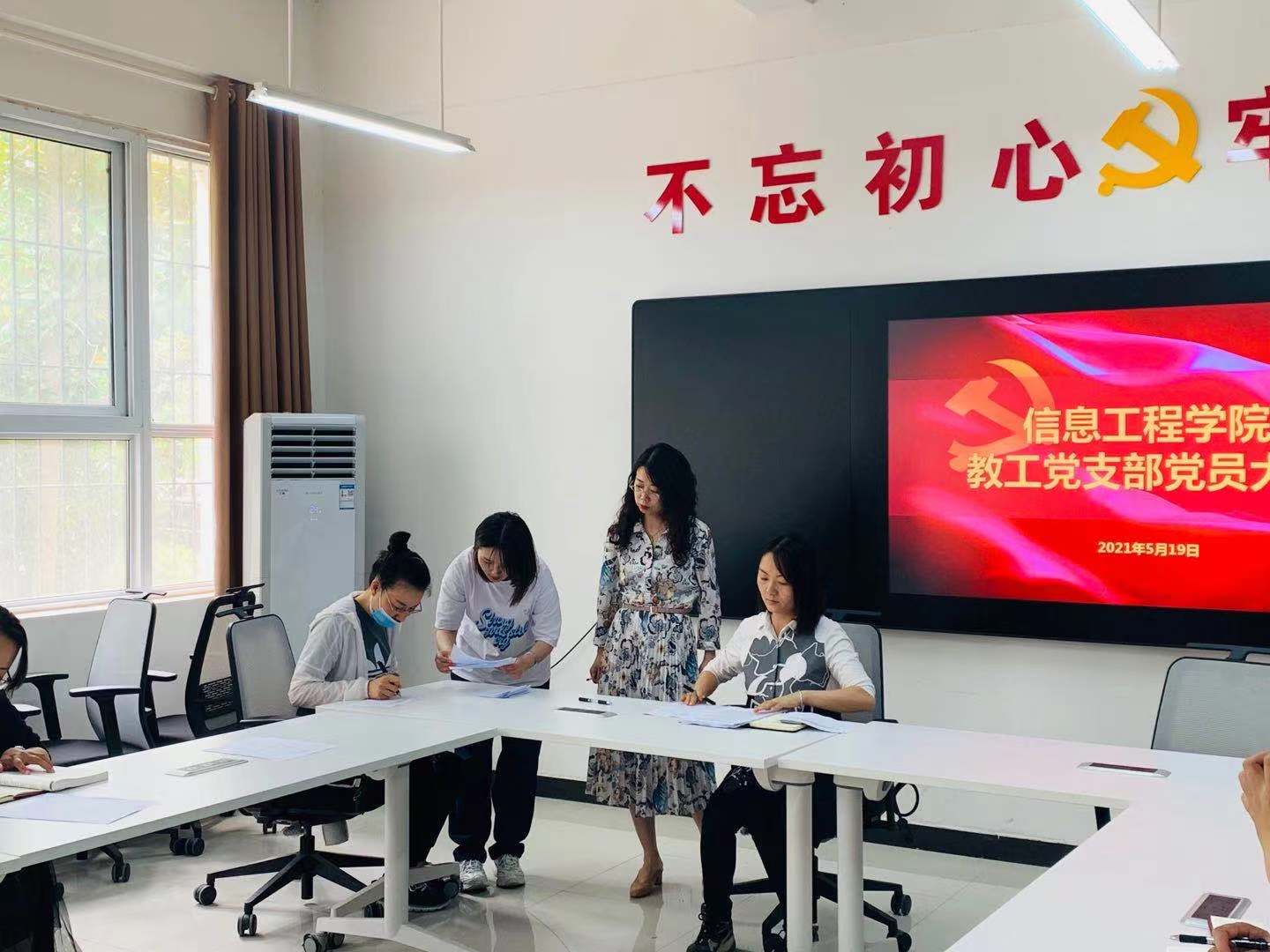 经学校党委统一安排,中共pp电子游戏平台网站信息工程学院教工党支部于2021年5月19日中午13:00在4A教学楼121会议室召开换届选举党员大会。信息工程学院党总支书记刘兆坤、院长潘宁出席会议,全体党员教师参会。