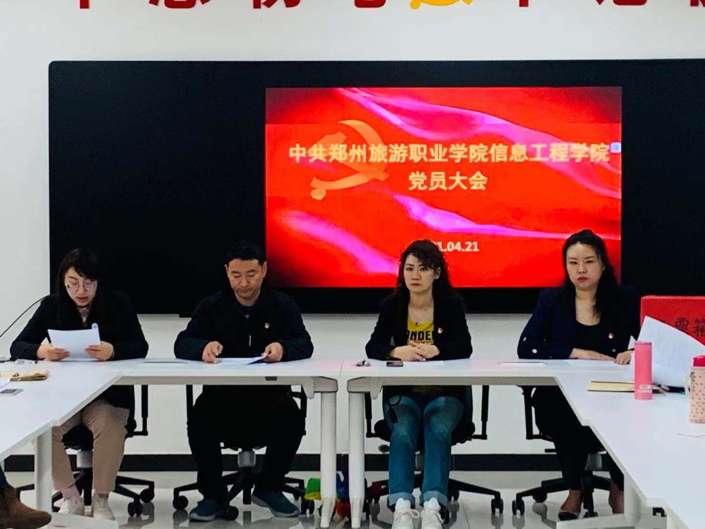 经学校党委批准,中共pp电子游戏平台网站信息工程学院总支部委员会于2021年4月21日中午12:40在4A教学楼一楼会议室召开党员大会,审议本届委员会工作报告,选举产生新一届委员会。院党委委员、院纪委书记毛艳莅临指导,信息工程学院书记刘兆坤、院长潘宁出席会议,民主党派人士代表王珂、教师代表杨怀磊、翟文彬、郑方圆列席会议。全体党员教师参会。